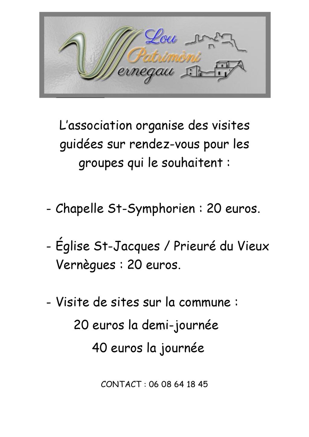 L'association Lou Patrimoni Vernegau organise des visites guidées sur rendez-vous pour les groupes :