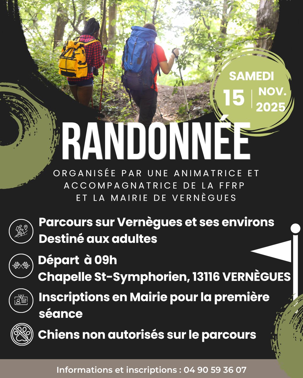 Rejoignez-nous pour une superbe randonnée organisée par notre animatrice / accompagnatrice de la FFRP et la Mairie de Vernègues 🏞️ !