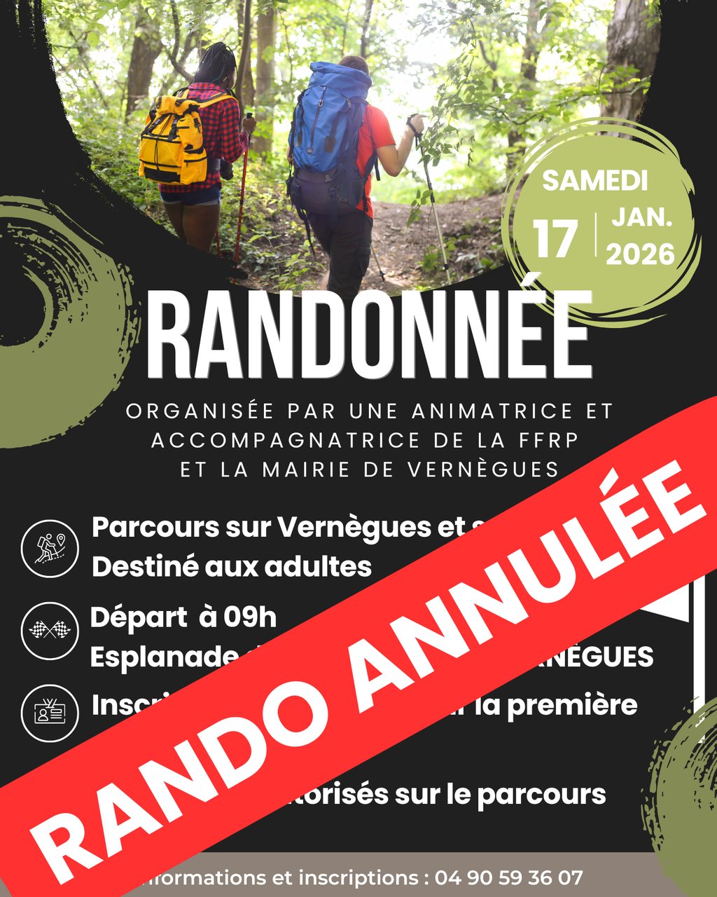 En raison des conditions météorologiques peu favorables, la randonnée du 17 janvier est annulée !